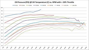 - 30% Throttle: Oil pressure got smoother, but otherwise didn't change enough to mention. Oil flow showed a reasonable increase in all RPM bands above 4000.